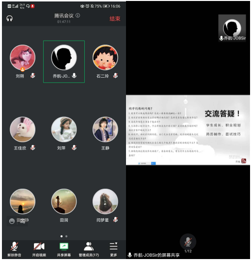 随后,乔航老师以“自我介绍”是当前面试中的一道必答题为引子,强调面试在当前就业中的重要性。如何在应聘中领悟到企业对员工的要求,抓住HR的关注点,在万千竞争者中脱颖而出成功上岸,这是一项系统工程,需要大家高度重视和精心准备。乔航老师还从企业需要什么样的人才、名企如何识别和筛选应届生、优秀员工的标准、好的简历应该具备什么特质、面试具有哪些形式及特征和以及面试中的种种细节展开了详细的介绍。并围绕大家在面试中遇到的问题和困惑一一进行解答和指导。