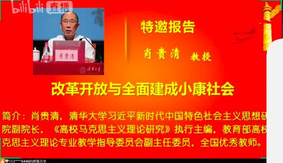 第一阶段,清华大学肖贵清教授做了题为《改革开放与全面建成小康社会》报告,包括中国传统文化中小康的涵义、小康社会理论是马克思主义中国化理论成果、小康社会建设与当代中国的发展和进步三个论点。首先从史学及文学角度,对中国传统文化中“小康”一词演变做了解读,对改革开放以来“小康”、“小康社会” 概念做了分析,着重讲到邓小平关于“小康”的界定落脚于中国式现代化。其次,重点分析了小康社会理论是马克思主义中国化理论成果,从“四个现代化”的设想、“小康之家”、党的十二大报告到十九大报告推进“小康”到“全面小康”、习近平总书记对全面建成小康社会的论述等进行了系统解读,强调全面建成小康社会内涵不断扩展、要求不断提高。最后分析了小康社会建设与当代中国的发展和进步,总结到小康社会从酝酿到提出,从总体到全面,从建设到建成,这是党的几代领导集体在更宏观时间线上的接力跑。
