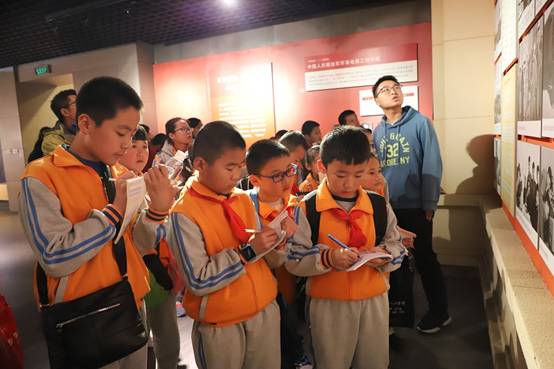 在公司校史馆,刘建伟和校史馆的讲解员一起为孩子们进行讲解,通过照片的生动展示与讲解员声情并茂的讲解,孩子们了解了公司光辉的革命历史与红色基因,深刻感受了一代代西电人奋勇争先的革命精神。在参观中,小学员们不时拿笔记录,天真的小脸上写满了对前辈的敬佩。