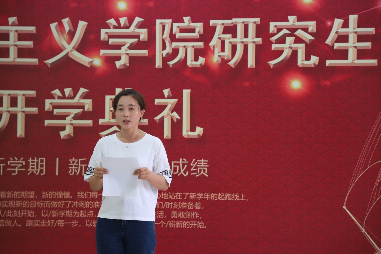 2018级员工代表苏佳敏向学弟学妹们分享了自己一年来的学习经验与体悟,2019级新生代表许晴分享了自己未来的规划与安排。