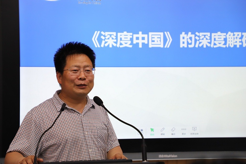 黄岭峻首先从其自身从事思政课教学经历、外界对于马克思主义学科的偏见以及为员工生树立四个自信等方面出发,介绍了深度中国这一课程的来历,并为大家解读了课程“深度的了解中国,了解深度的中国”的中心思想。随后,黄教授从以下几个方面对深度中国课程进行了详细介绍:课程坚持“让合适的人做合适的事”的原则,试行“一师多堂,多师一堂”的教学模式,使其教师队伍成员得以充分发挥个人所长。课程内容以社会发展,员工需求以及满意度为方向指导,具有多角度、多方面的特点,注重将马克思主义理论的最新研究成果、最新时政热点、最新实践经历引入课堂。在讲授方式上采取“讲授+互动”的方式,保有思政课程的仪式感,实现考试、考勤、师生互动的多方式一体化教学。
