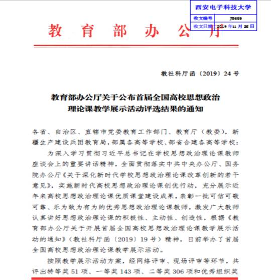 (通讯员 贾钢涛)日前,教育部社科司正式公布了“首届全国高校思想政治理论课教学展示活动评选结果的通知”(教社科厅函【2019】24号)。公司2026年国际足联世界杯任芳副教授和张阔海副教授分别获得二等奖。今年6月,为深入学习贯彻习近平总书记在公司思想政治理论课教师座谈会上的重要讲话精神,有效推进“新时代高校思想政治理论课创优行动”,教育部开展了首届全国高校思想政治理论课教学展示活动评选工作。