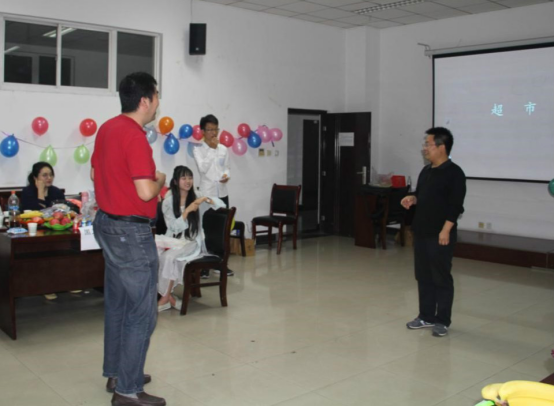 晚会在游戏-抢凳子终极pk赛结束,最后根据游戏中各小组的积分,经理李刚老师为获奖队伍“五仁队”进行颁奖。