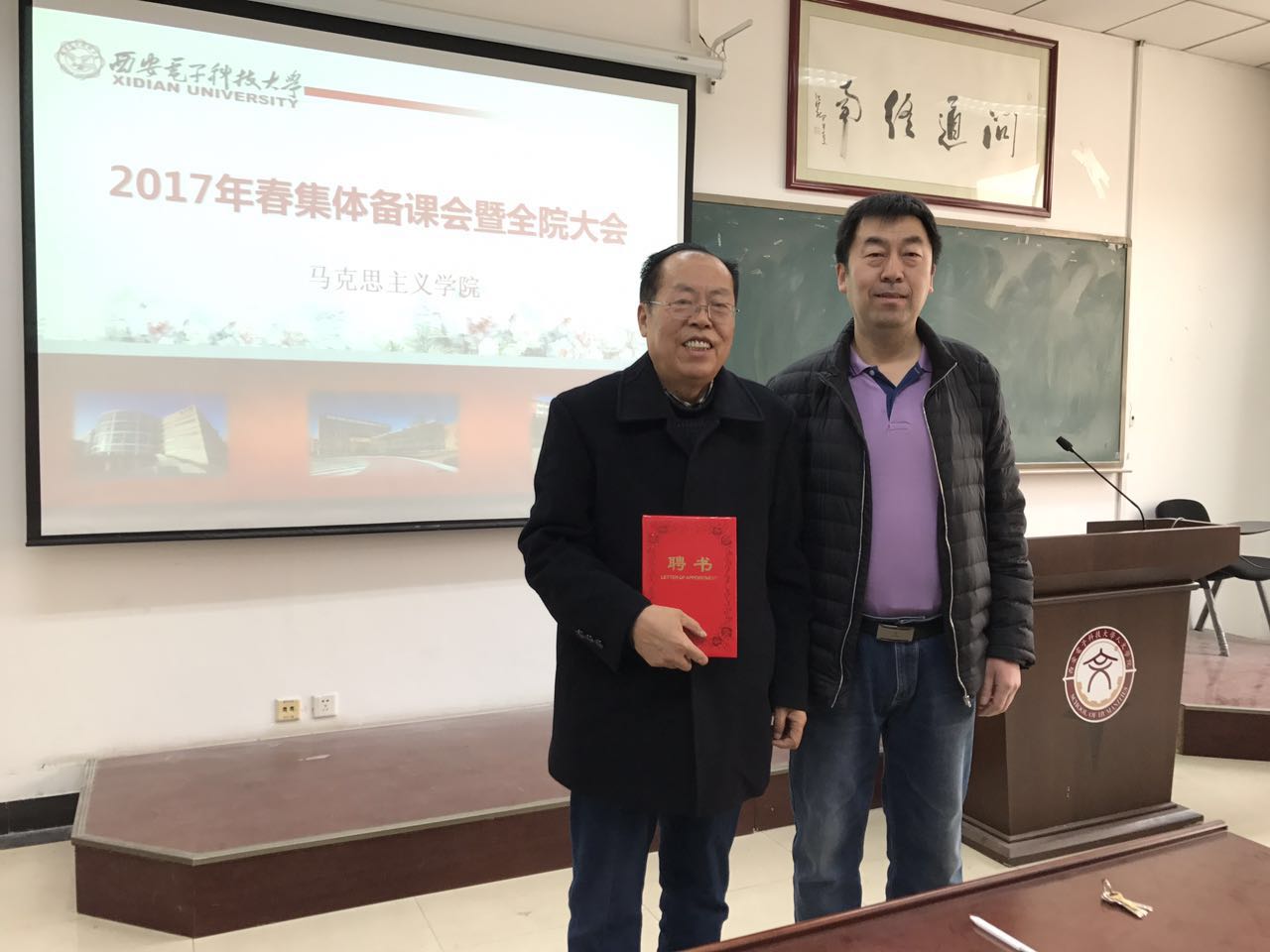 会议首先聘请了原人文公司党委书记戎毓春教授为公司教学督导。聘任仪式后,戎毓春做了“贯彻总书记讲话精神,创新思政课教学方法”的专题报告。报告分为五个部分: