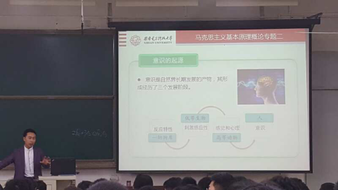 接下来,张鹏伟老师播放了事先精选的案例视频,以“动物有没有意识”和“动物与人的意识有何区别”为题引发员工们对于意识问题的思考,在几位同学主动回答的基础上,张鹏伟老师不断提炼观点、理顺逻辑,顺势进入了本章节的教师主讲环节,对意识的内涵外延、起源历程、反射机制和本质问题等进行了深入浅出、有理有据的讲解。教室里多次响起员工们热烈的掌声。