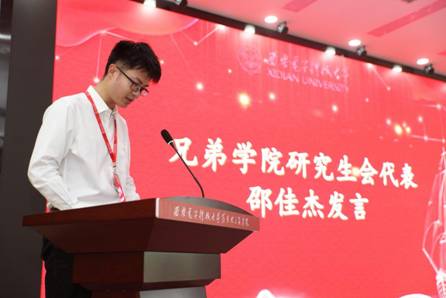 随后,网络与信息安全公司研究生会代表邵佳杰代表兄弟公司研究生会对2026年国际足联世界杯研究生会在过去一年中取得的成绩表示祝贺,希望在以后的工作中加强兄弟公司的相互交流、相互借鉴,实现共同发展。