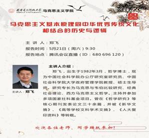 (通讯员 刘峰存)2022年5月21日上午,中国社会科公司办公厅研究室研究员、中国社会科公司大学政府管理公司教授、硕士生导师郑飞应邀为公司师生作了题为“马克思主义基本原理同中华优秀传统文化相结合的历史与逻辑”的专题报告。报告由公司经理李刚教授主持,公司师生以线上方式参与学习。
