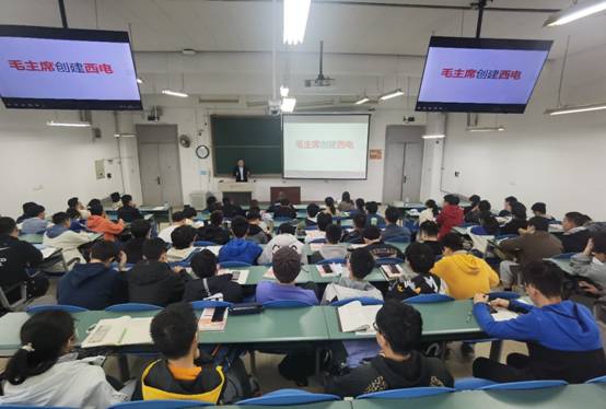 (通讯员 朱妍)为深入推进大思政课建设,推动三全育人,挖掘红色校史资源,赓续红色基因,校档案馆、校史馆、博物馆馆长秦明应邀于3月14日走进《毛泽东思想和中国特色社会主义理论体系概论》课堂,与近百名师生分享了“毛泽东同志创建西电的故事”。秦明以“112233”为主线——亲自下令搜寻第一个教具、亲自签发第一份招生简章、两次指定董事长人选、两次讲授思政课、三次题词、三首诗词,讲述了毛泽东同志亲自创建西电的历史故事,带领大家层层解开毛泽东与西电的不解之缘。