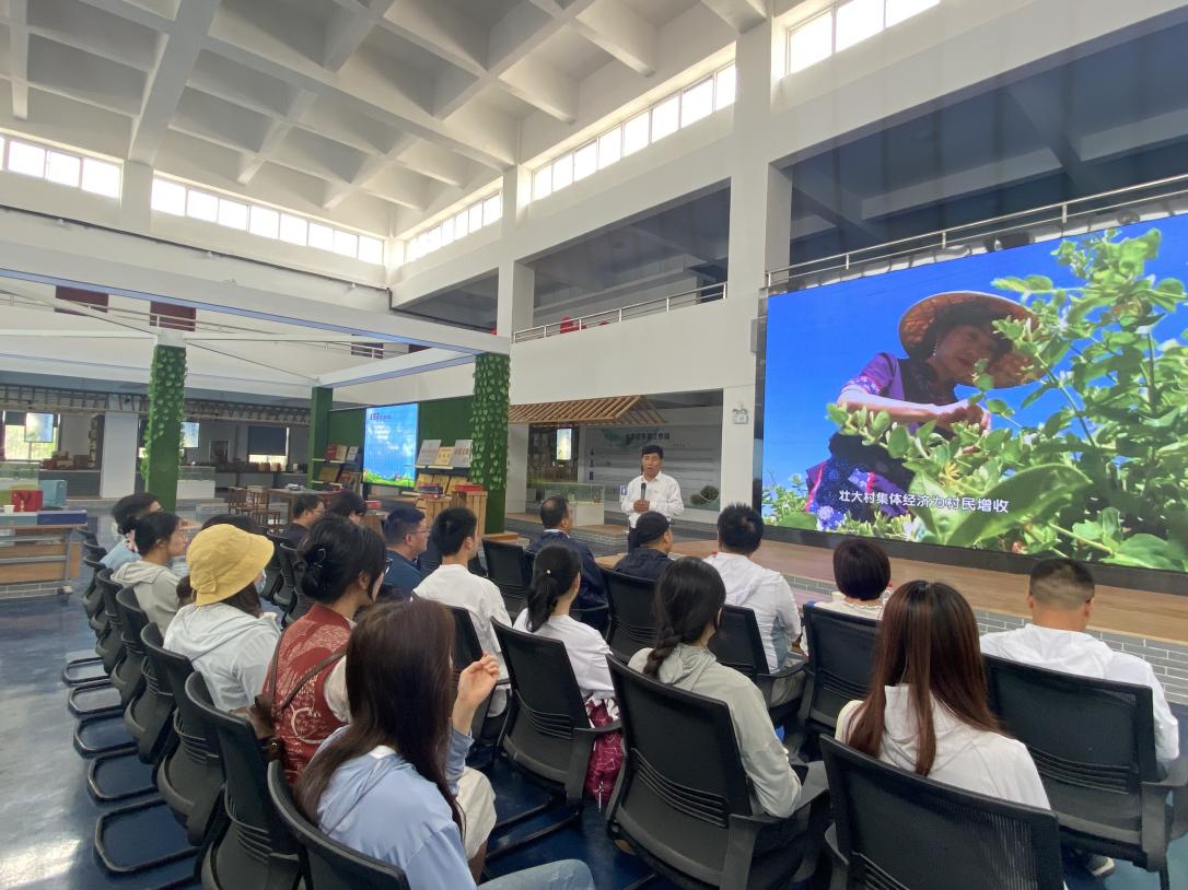 随后,闫家村党支部书记王春颜结合个人亲身经历,生动讲述了金银花产业发展带动乡亲脱贫致富的奋进故事。在他的带领下,师生们参观了金银花农产品展销研发服务中心展厅,深刻理解了找准发展优势,积极把产业发展作为乡村振兴的关键一招,持续带动村民增收致富的重要意义。