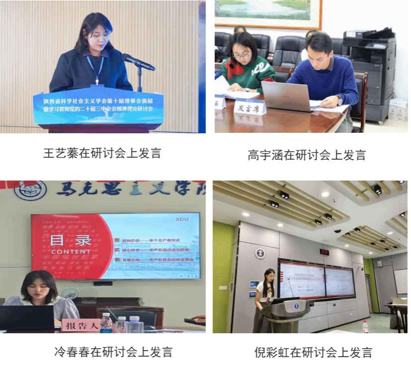 其中,王艺蓁撰写的论文获陕西省科学社会主义学会优秀论文一等奖;李梦华撰写的论文获第三届铸牢中华民族共同体意识研究生论坛优秀论文一等奖;郭丽娟撰写的论文获延安大学主办的研究生学术论坛优秀论文一等奖;高宇涵撰写的论文获江苏省第八届马克思主义理论学科研究生论坛优秀论文二等奖;冷春春撰写的论文获学习贯彻习近平总书记“5·17”重要讲话学术研讨会优秀论文奖;倪彩虹撰写的论文获第三届马克思主义理论学科青年学者“淮海论坛”优秀论文三等奖;陈晓梅撰写的论文获第二届“中华民族伟大复兴”青年学者论坛优秀论文三等奖。部分员工在研讨会上做交流发言。