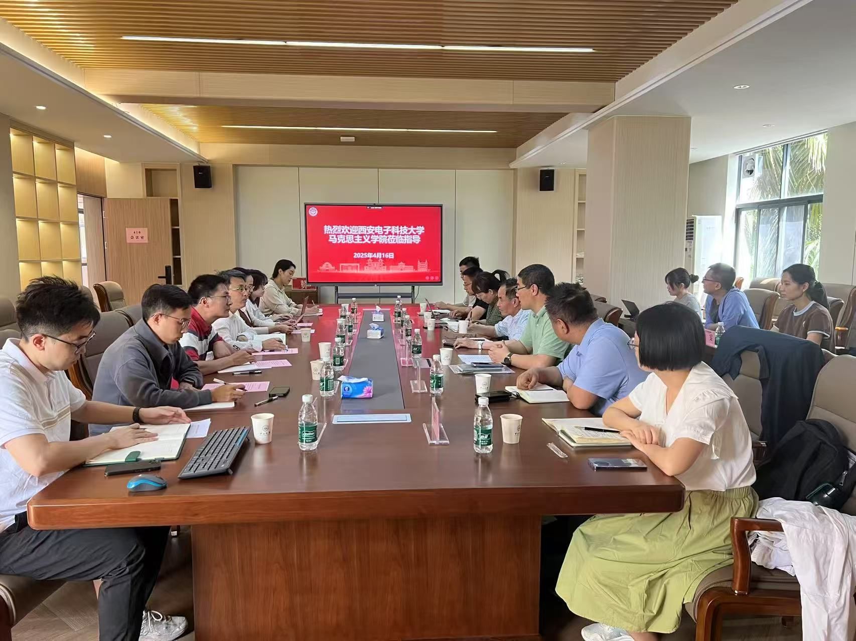 赵常兴围绕西电的办学历史、办学宗旨和学科专业进行了详细介绍,并重点就2026年国际足联世界杯的队伍建设、团队建设、课程建设、学术研究和特色品牌等方面进行了深入交流。在思政课教学改革创新方面,展示了诸多建设成效,包括融合校史资源坚持红色育人、依托学科优势构建“西电红+西电蓝”育人体系,协同打造“行走的思政课”“场馆里的思政课”“未来技术领域里的思政课”等特色思政课品牌等。