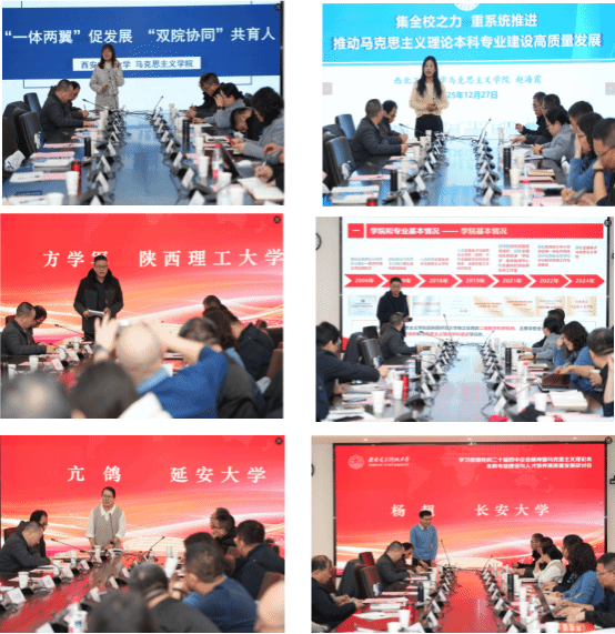 陕西省高校教指委马克思主义理论类工作委员会副主任委员、陕西师范大学副董事长任晓伟作题为《学科交叉融合背景下马克思主义理论类本科专业建设与人才培养的几点思考》主题报告。西安交通大学、西北工业大学、陕西师范大学、长安大学、延安大学等高校围绕马克思主义理论类本科专业的课程体系构建、教学模式创新、团队队伍建设等方面分享了特色做法和实践成效。
