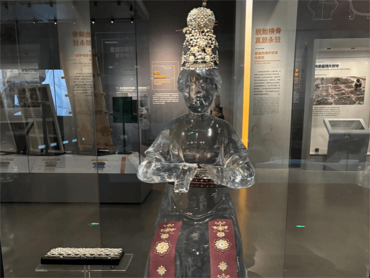 它以“考古历程”“文化谱系”“考古发现”“文保科技”四个篇章为主题,为人们徐徐展开一幅历史画卷。在这里,能看到首例考古发掘出土的颜真卿书丹墓志“罗婉顺墓志”,其书法价值非凡;秦咸阳城遗址的“人物车舆图壁画”,色彩与线条勾勒出古时风貌;还有具备星形、星数、图像、题名四要素的“汉代墓室顶部星象图”,透影白瓷杯的精妙工艺,以及“上官婉儿墓志并盖”背后的传奇故事。这些珍品与其他文物一起,生动讲述着陕西大地的往昔。
