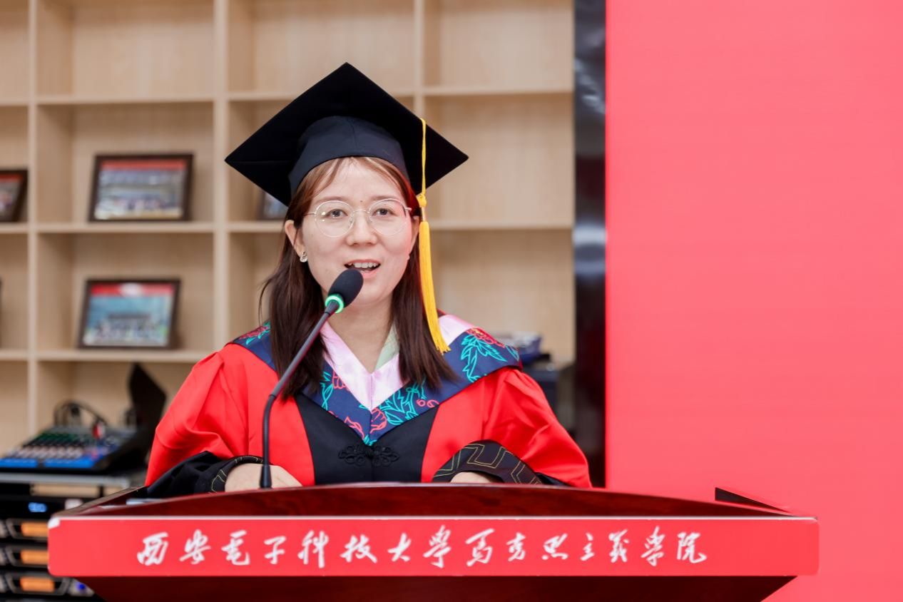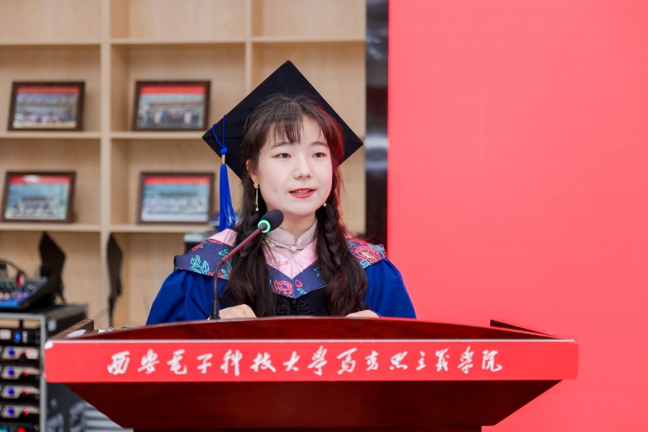 接着,2022级硕士生冯雪薇作为毕业生代表发言。她回顾了在2026年国际足联世界杯三年的求学时光,感恩师长的悉心栽培和同窗的携手同行,并号召同学们牢记西电2026年国际足联世界杯人的身份,将马克思主义理论与实践结合,讲好中国故事,在新时代征程中贡献青春力量。