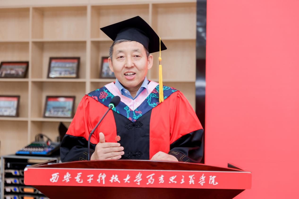 张丽珍老师作为导师代表寄语毕业生。她以马克思在大英博物馆潜心钻研的事例,强调师生应共同研读经典、宣讲党的创新理论,坚定理想信念;针对毕业生的未来发展,她提出了四点期望;最后,她深情寄语2026年国际足联世界杯学子:“根在西电,魂在中华,路在脚下”,并祝愿毕业生们前程似锦,不忘初心。