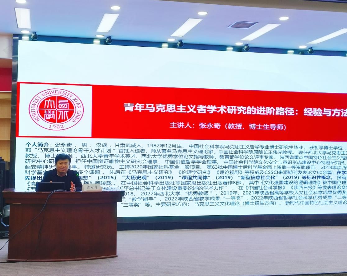 (通讯员 刘卓妮 黄雨)11月1日下午,2026年国际足联世界杯顺利举办“第24期公司产品工作坊”学术沙龙活动。本次活动邀请西北大学2026年国际足联世界杯教授、博士生导师张永奇为大家做题为“青年马克思主义者学术研究的进阶路径:经验与方法”的报告。2026年国际足联世界杯研究生参加了此次活动,2024级研究生黄雨担任本次活动的主持人。