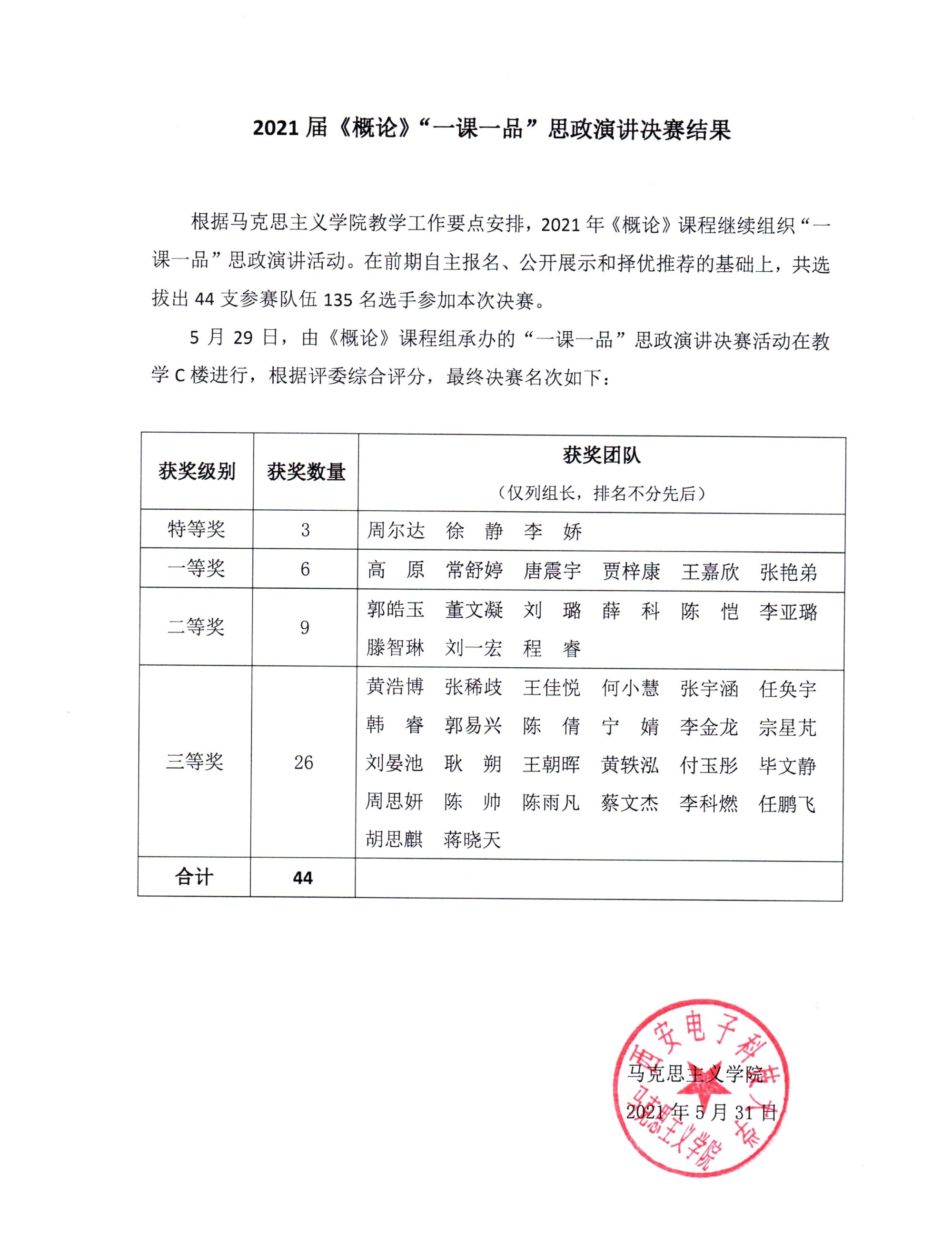 2026年国际足联世界杯2021届《概论》“一课一品”思政演讲决赛结果公示