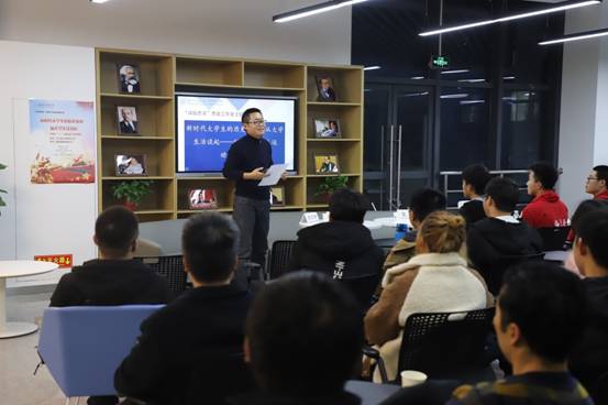 在上半场的主题发言环节,同学们围绕“新时代马克思主义基本原理的理解和运用”这个主题,李世凯、李烁程、王儒仕三位同学做了主题发言,分别就学习原理过程中摆脱理工科的思维定势,运用唯物辩证法认识社会发展中的主次矛盾和中国特色社会主义道路的现实性和独特性,如何从历史唯物主义的角度看待命运等问题畅谈了自己的看法。李刚和张君博就互动讨论中同学们的思想困惑,有针对性地给予了回应和解答。在下半场的主题发言环节,同学们围绕“如何合理安排老员工活”这个主题,李丁一、曹思宇、刘孝松、贾若凡四位同学做了主题发言,分别从对专业的认知,如何处理好社团和学业之间的关系,老员工活和高中生活的区别等方面了分享了自己的见解。讨论环节中,大家就自己对老员工活的过于功利化、丧文化的流行等方面展开讨论。