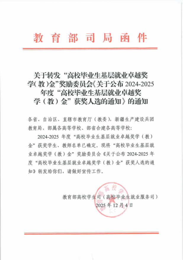 2024 - 2025年度“高校毕业生基层就业卓越奖学(教)金”获奖名单(部分)
